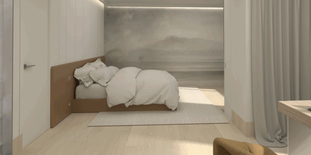 Situé face à la New York Bay, l’appartement offre une vue saisissante sur New Jersey et la lumière mouvante du fleuve. Entre énergie urbaine et quiétude maritime, le projet vise à inscrire la modernité dans une esthétique intemporelle : créer un espace où la lumière, la matière et la vue s’accordent en un ensemble fluide et cohérent.