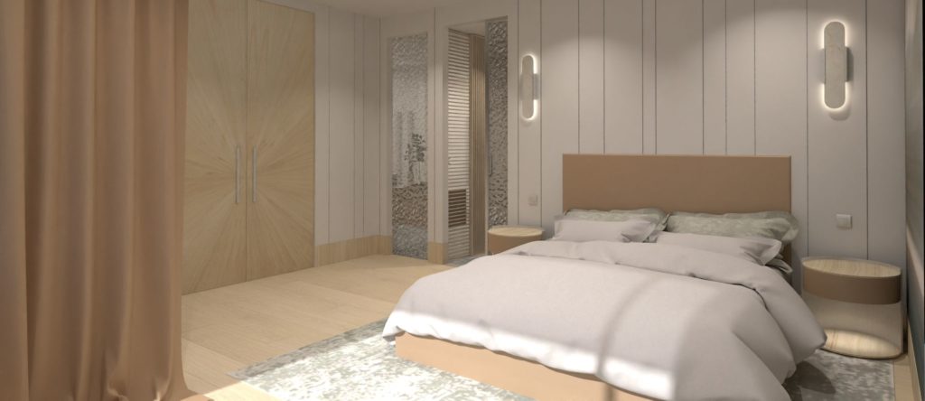 Parallèlement, le concept décoratif a pris corps : modélisations 3D, moodboards, sélection des matériaux et du mobilier.